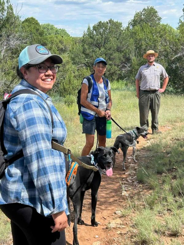 Our Bark Ranger is our sweet, energetic pittie baby Maeve, aka Maevey Moo! She picked us to be her pawrents in late 2023 and has been part of our adventures ever since. She is always up for a hike, road trip, camping but also a good post-adventure snuggle too! She loves getting to experience the amazing NPS with us and get to spread the word about US Bark Rangers! We also have 3 honorary “Bark” Rangers at home of the feline variety - Apollo, Artemis, and Smores! While they might not go on all our trips with us, they do join us for some fun in the yard sometimes!